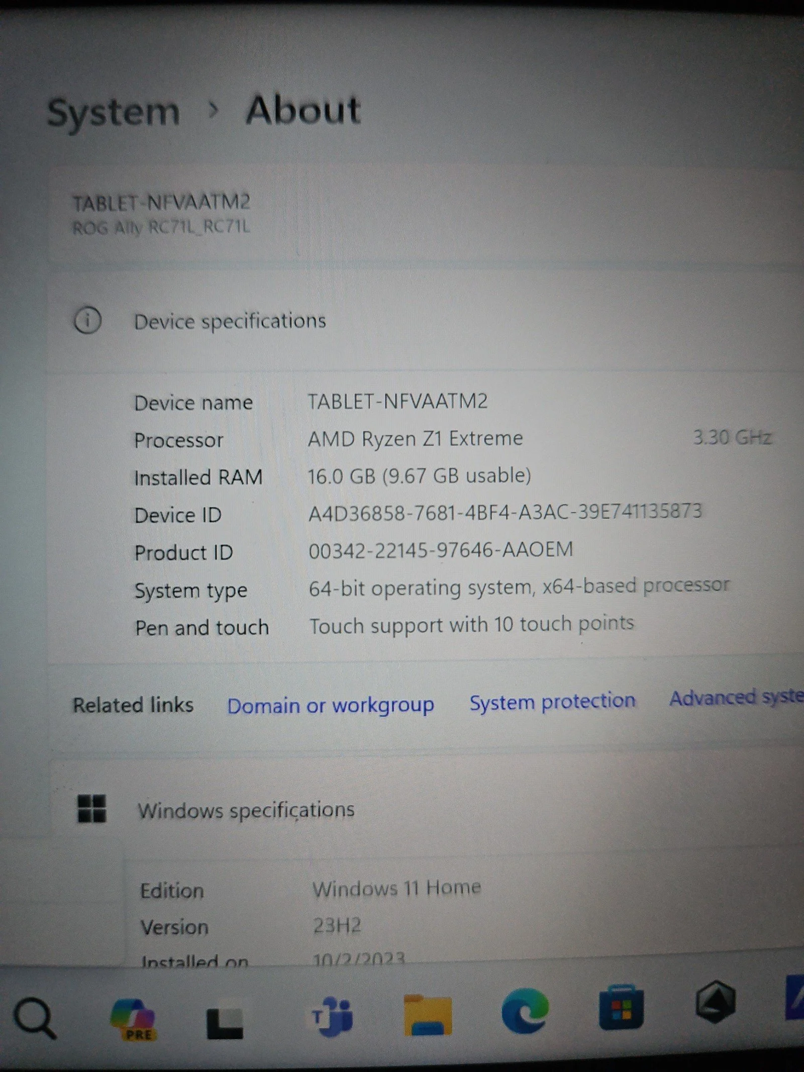 Asus Rog Ally z1 extreme. Console works perfectly and will come factory reset. Includes case. There is a small white dot on screen (shown in picture 5). I believe the dot is a mark on the screen itself and not a dead pixel. Does not interfere with the overall experience, however. It is there, tho so I wanted to make it known.