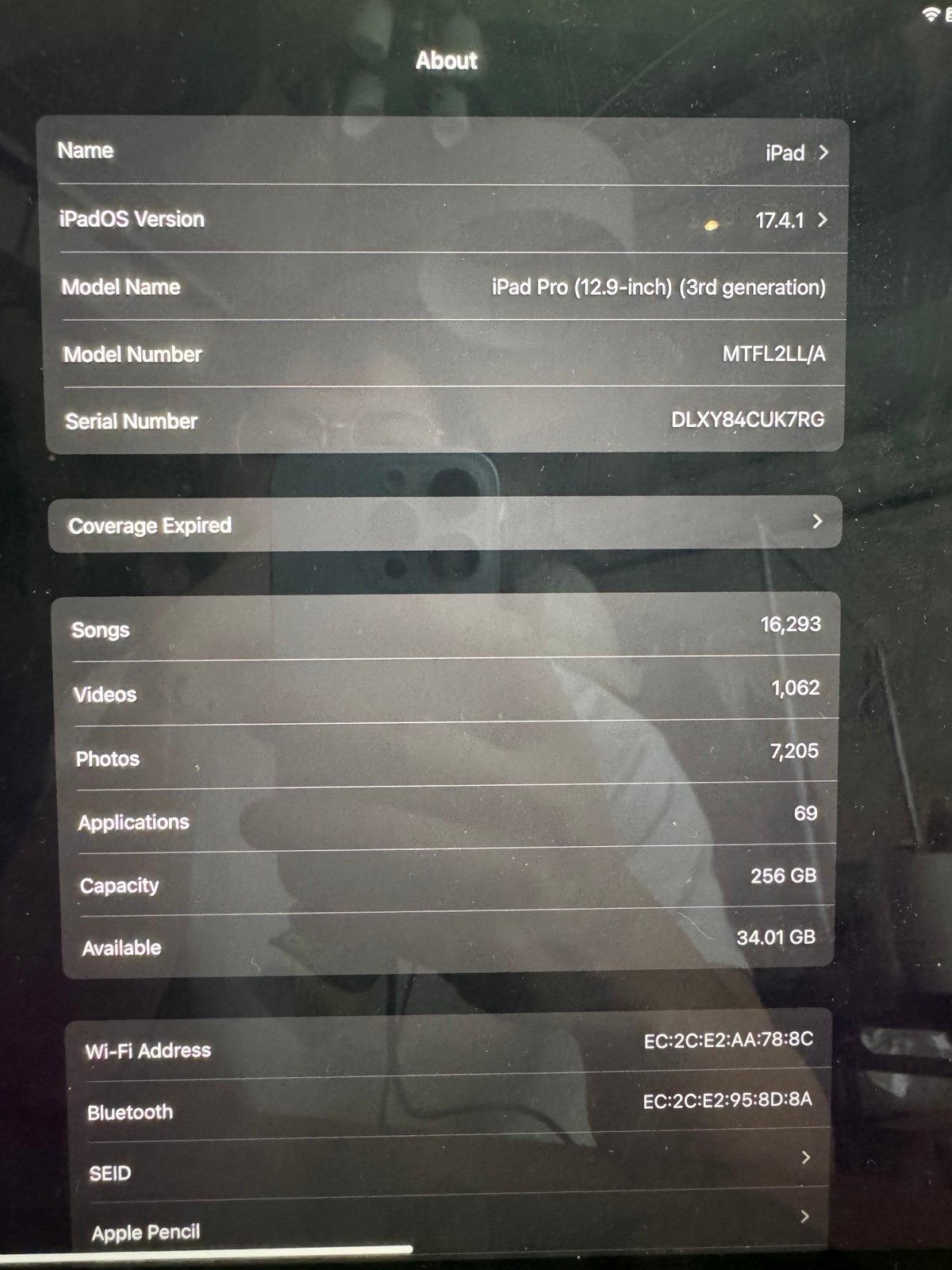 *RARE* Apple iPad Pro 3rd Generation 1 TB in Silver 12.9” Cellular+ APPLE PENCIL 3R53