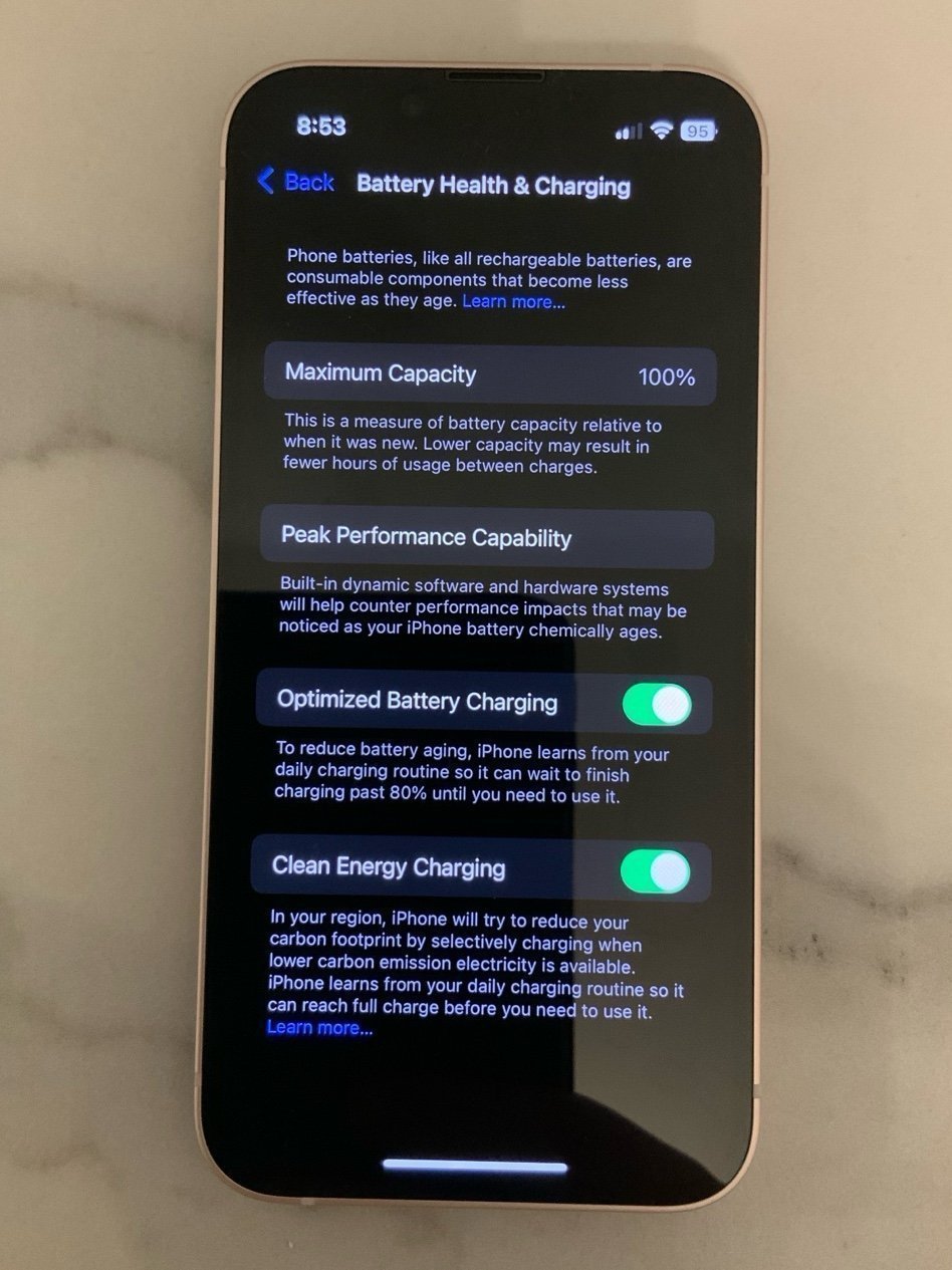 Battery health: 100%