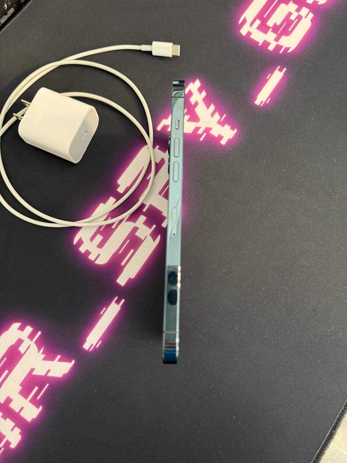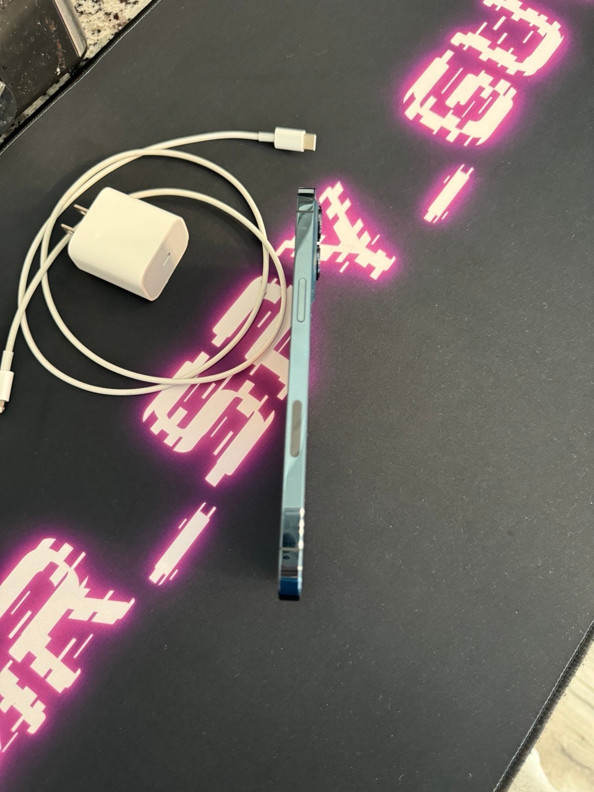 Lightly used, 1 owner, Apple iPhone 12 Pro Max 256 GB in Pacific Blue for Unlocked. Almost perfect. Slight wear and tear, but completely operational and like new. Also comes with the charging cable, but not the adapter cube.