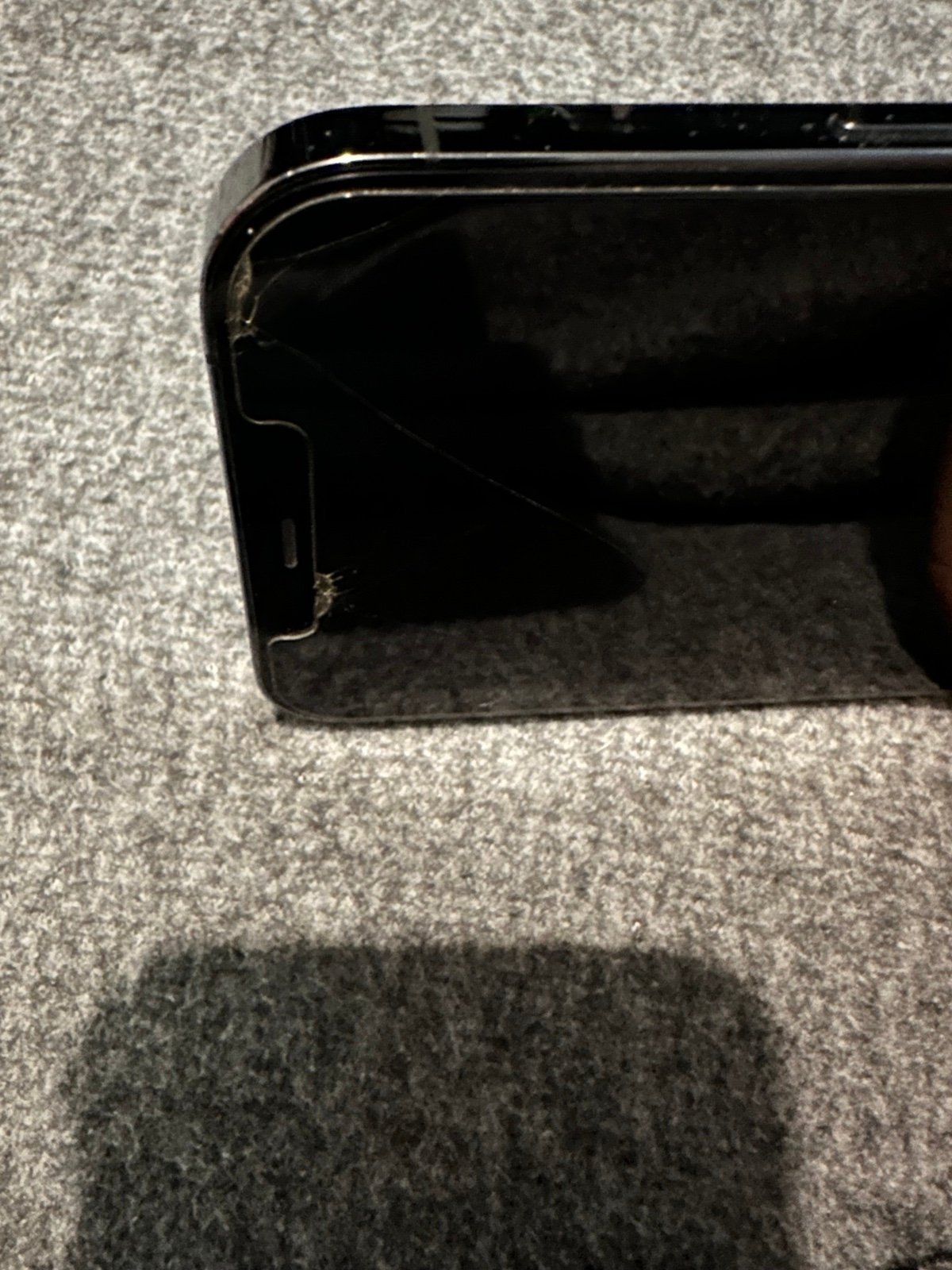 12 pro max 128 gig for att. Perfectly good phone will factory reset before sending. There is a glass screen protector that is cracked I can either remove it or leave it on. Charger and speakers work fine. do not have the box for it but can send it in a replacement box