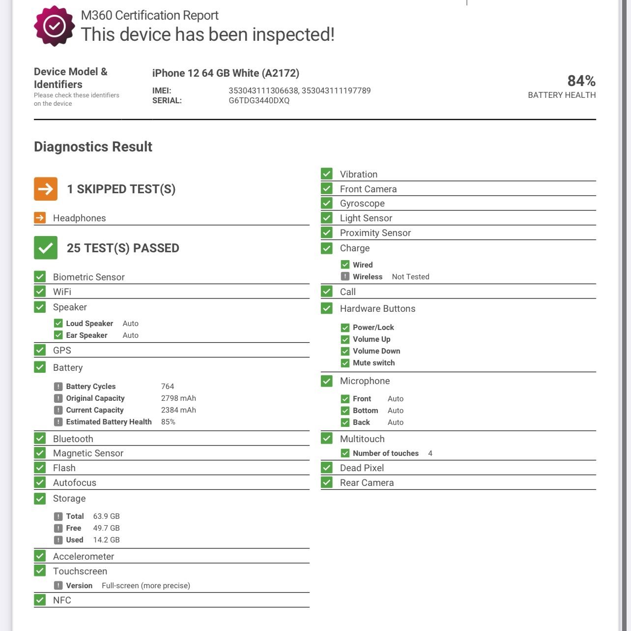 ✅Checked & Inspected. Inspection report in the photos.